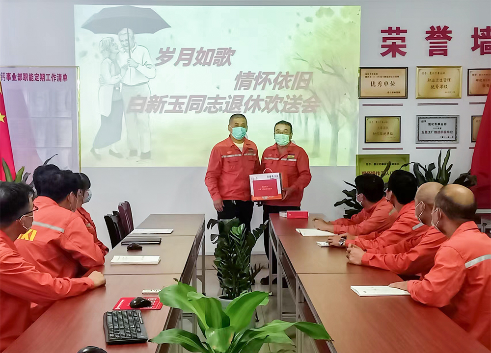 近日,在氯化鈣事業(yè)部會議室,一場有溫度有熱度的退休員工歡送會正在如火如荼的開展著。“我是1988年6月28日來到魯西參加工作,到現(xiàn)在已經(jīng)有34年了,在這個期間我干過操作工,當(dāng)過主任,廠區(qū)的角角落落我走了不知道多少遍,一起工作的同事?lián)Q了一批又一批,這幾十年可以說是一半的時間都在廠子里,看著企業(yè)一步步發(fā)展壯大,由衷的感到高興,雖然前段時間已經(jīng)做好了退休準(zhǔn)備,現(xiàn)在要離開企業(yè)了,心里還是很不舍得……”在歡送會現(xiàn)場,退休職工白新玉回想起在廠工作的日日夜夜有些哽咽。事業(yè)部對白新玉同志多年來為企業(yè)做出的貢獻(xiàn)表示感謝,并為其贈送紀(jì)念品,同事們也紛紛送上祝福。