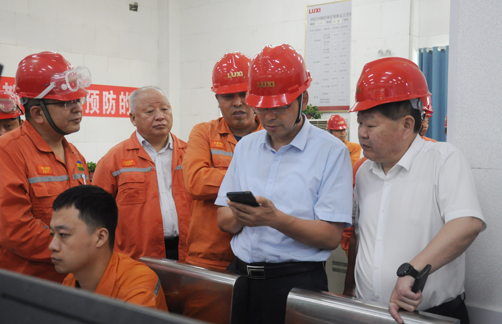調研組首先對集團煤場揚塵治理措施的落實情況、能源替代情況進行了現場檢查指導,對環保幫扶工作開展情況及效果進行了現場詢問。在鍋爐煙氣治理主控室,調研組對煙氣排放情況進行了現場查看分析,要求企業在目前氮氧化物實現超低排放的基礎上,積極開發新技術,進一步降低氮氧化物的排放量。