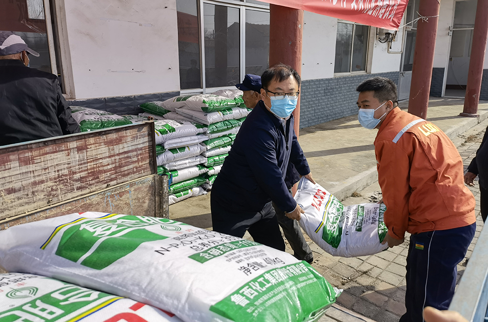 3月8日,魯西集團積極響應市行政審批服務局號召,到高唐縣楊屯鎮云莊村開展“雙聯共建? 振興鄉村”活動。化肥事業部區域負責人與云莊村村委工作人員將春季小麥追肥所需的400袋肥料免費送到農戶手中,并為農戶講解了春季追肥的重要性、小麥追肥的施用方法,以及本次贈送的硝基復合肥25-0-8施用后在小麥補氮、壯桿和抗倒伏中所起的作用,確保科學合理施肥,保障小麥良好長勢,助力農戶豐收。