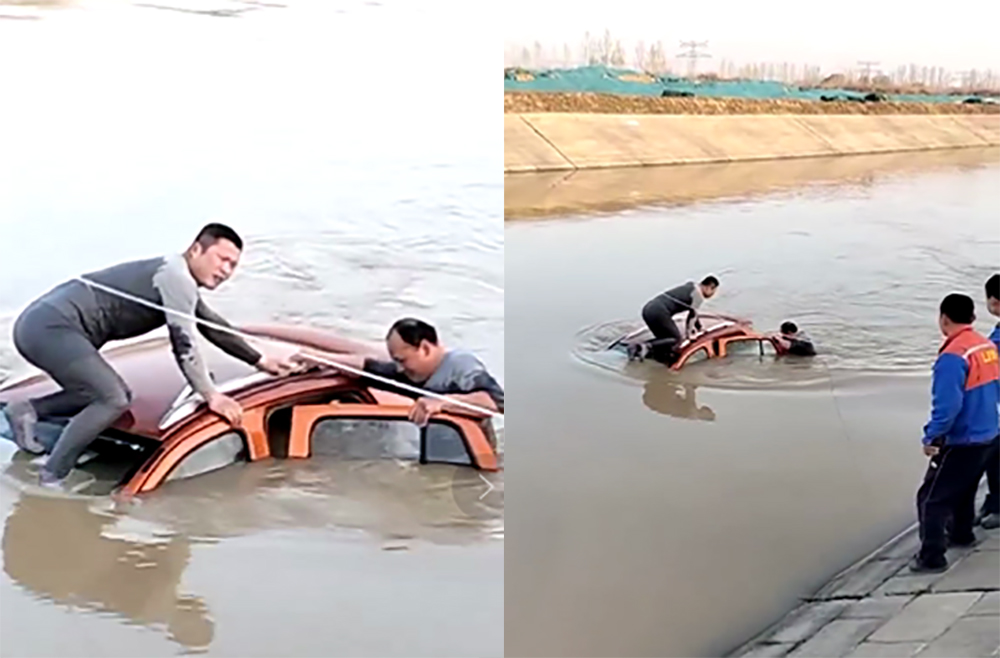 此時仍是農(nóng)歷二月時節(jié),乍暖還寒的時候,河水還是冰冷的。多年的魯西工作經(jīng)歷使他們形成了有較強的安全意識,為避免水冷抽筋出現(xiàn)意外,二人拿出自己車?yán)锏睦K子綁在腰上,在其他后趕來的同事的輔助下,毫不猶豫跳入河水中展開救援。他們游近轎車,仔細(xì)對轎車內(nèi)部進行搜尋,最終確定轎車中沒有人員后才安全上岸,默默無聞的離開現(xiàn)場。