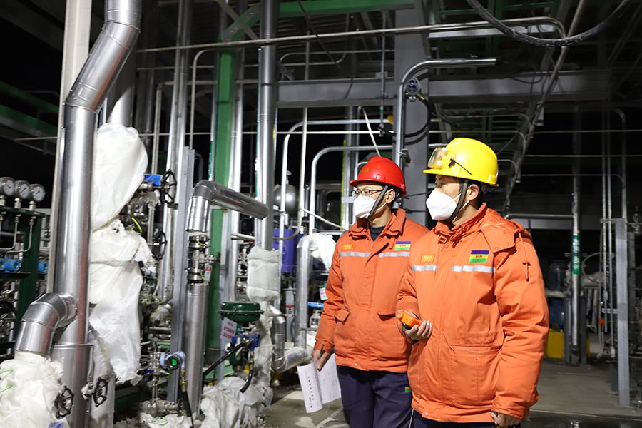 四個月的建設工期,經歷了供貨延期、圖紙修改、疫情停工等種種不利因素影響,最終實現項目一次開車成功。目前,魯西集團正在對裝置進行催化劑1000 小時性能評價和72 小時工況最優考核。下一步,魯西集團將與西南院繼續深化產業協同,以此項目為基礎開發10 萬噸級工業化示范項目工藝包,形成具有自主知識產權的二氧化碳制甲醇成套技術,助力中國中化低碳綠色發展。