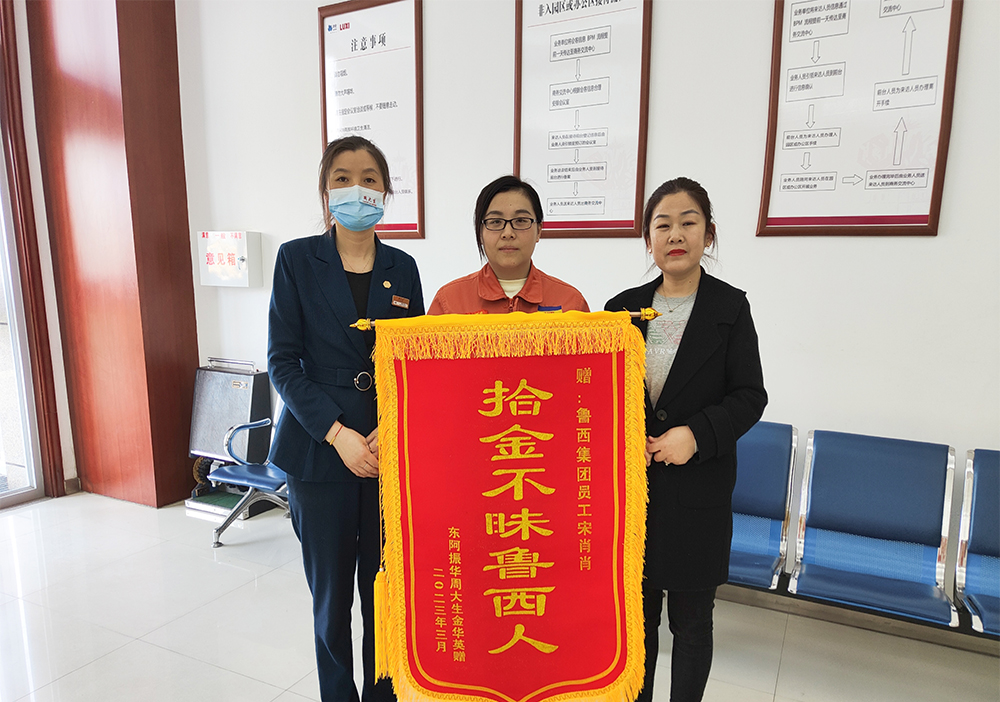 “撿到東西歸還失主是應(yīng)該的,我母親是這樣教育我的,企業(yè)也教育我們要做誠實守信的員工,我也要給孩子做個好榜樣。”宋肖肖幾句樸實無華的話,讓對方更加感激,為了感謝宋肖肖拾金不昧的善舉,將印有“拾金不昧魯西人”的錦旗送到了宋肖肖的手中,表達(dá)感謝之意。