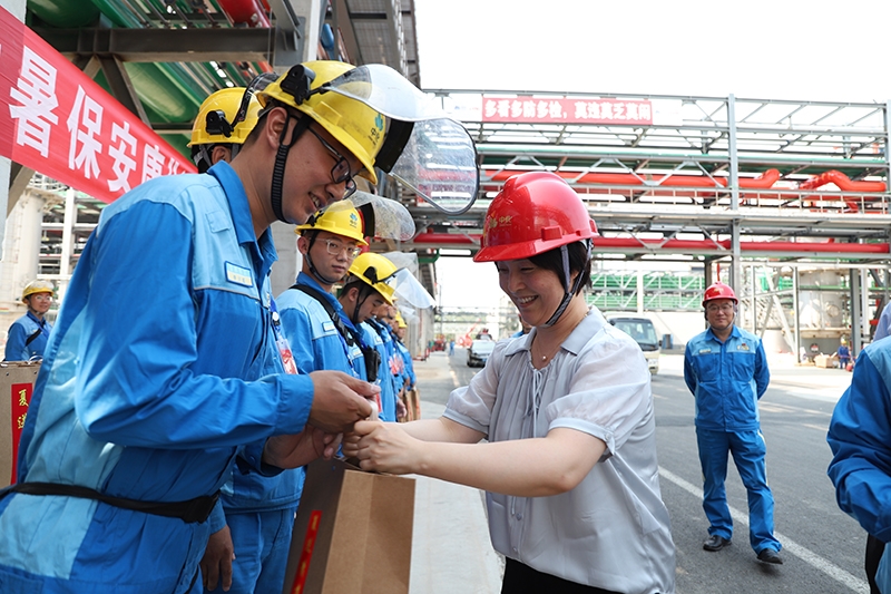 7月10日,山東省石油化學工會副主席張文青一行來公司開展“工會送清涼 防暑保安康”活動,公司黨委副書記王富興,財務總監、總法律顧問、首席合規官毛江強,高級副總經理、工會主席張雷參加活動。